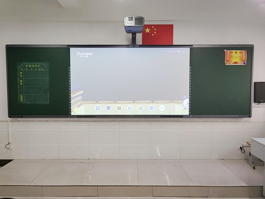 学校使用东方中原激光智慧黑板教学。东方中原激光智慧黑板基于健康护眼的研发初心打造,亮度高、色域广、防蓝光、不反光,长时间观看也不会出现视疲劳,全方位做到保护学生的视力健康。内置丰富的教学资源,为老师打造轻松的教学环境,为学生营造有趣的课堂氛围。